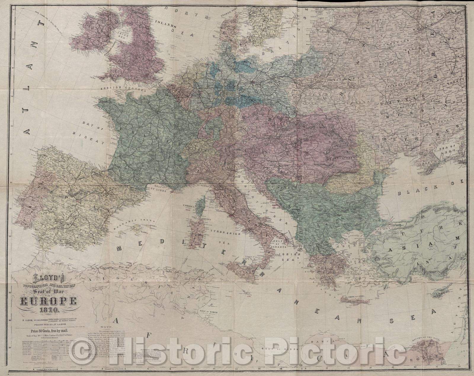 Historic Map : Lloyd's topographical and railway map of the seat of war in Europe, 1870., 1870 , Vintage Wall Art