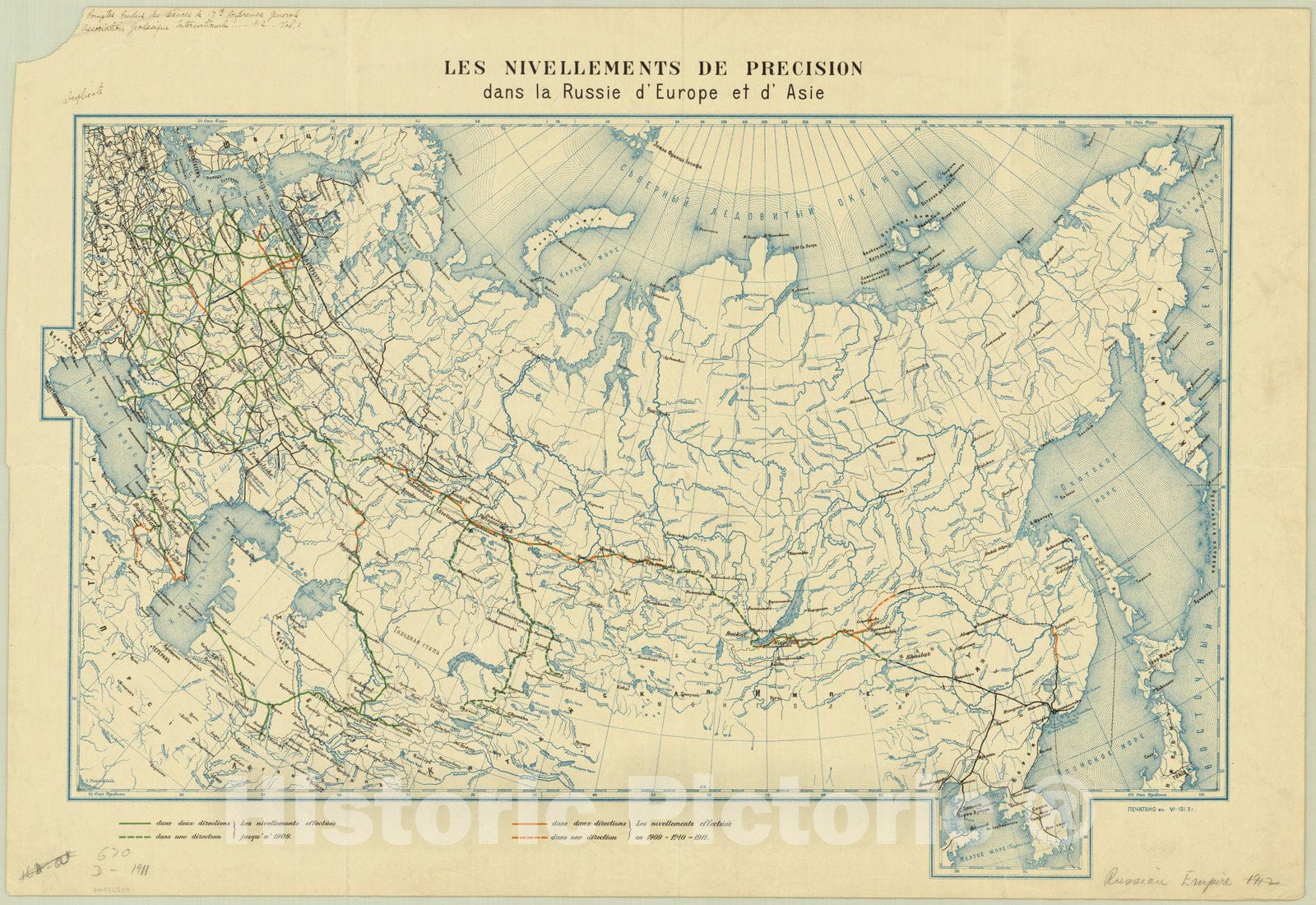 Map : Russia 1913, Les Nivellements de precision dans la Russie d'Europe et d'Asie, Antique Vintage Reproduction