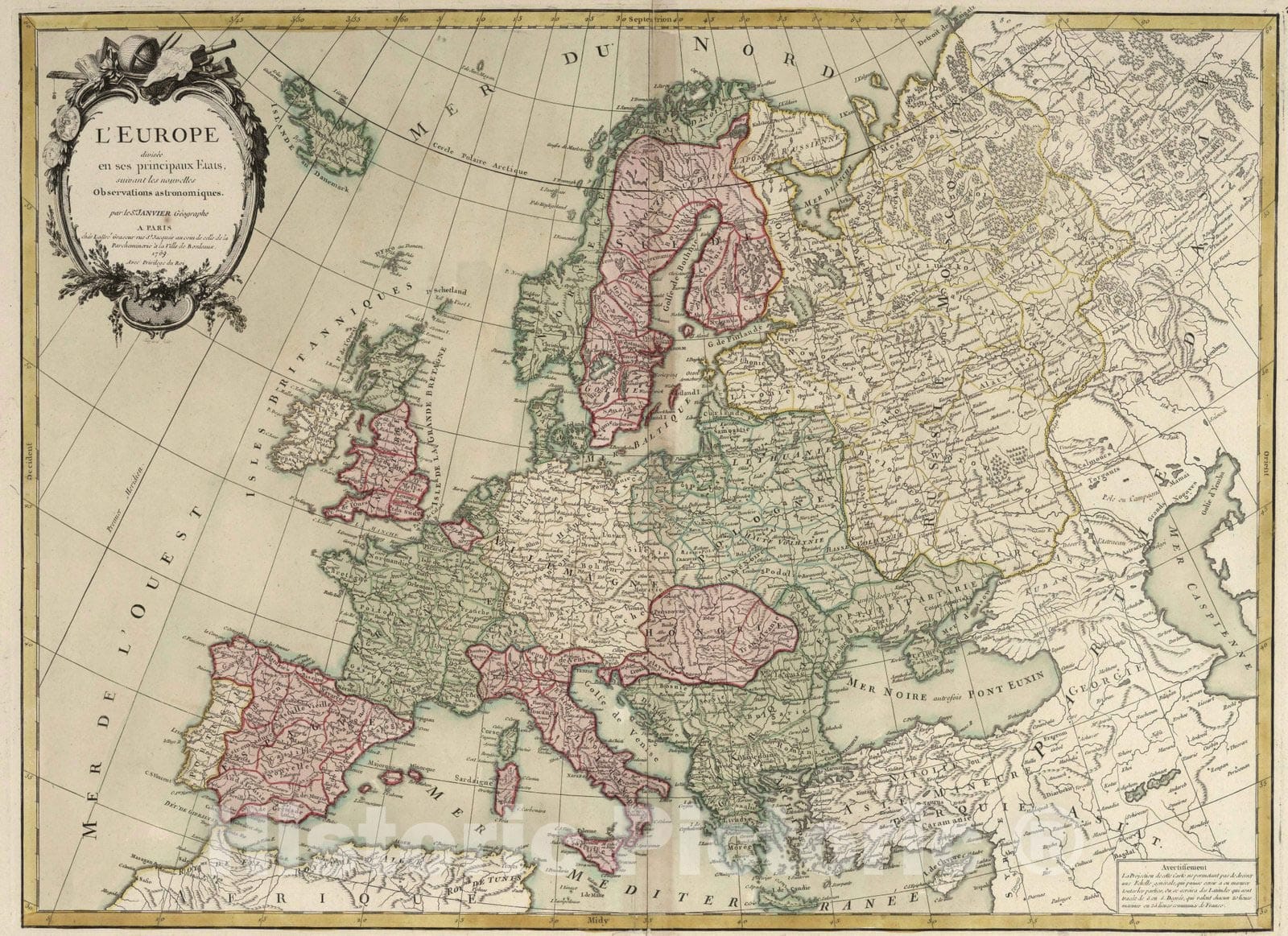 Historic Map : 1769 L'Europe divisee en ses principaux etats - Vintage Wall Art