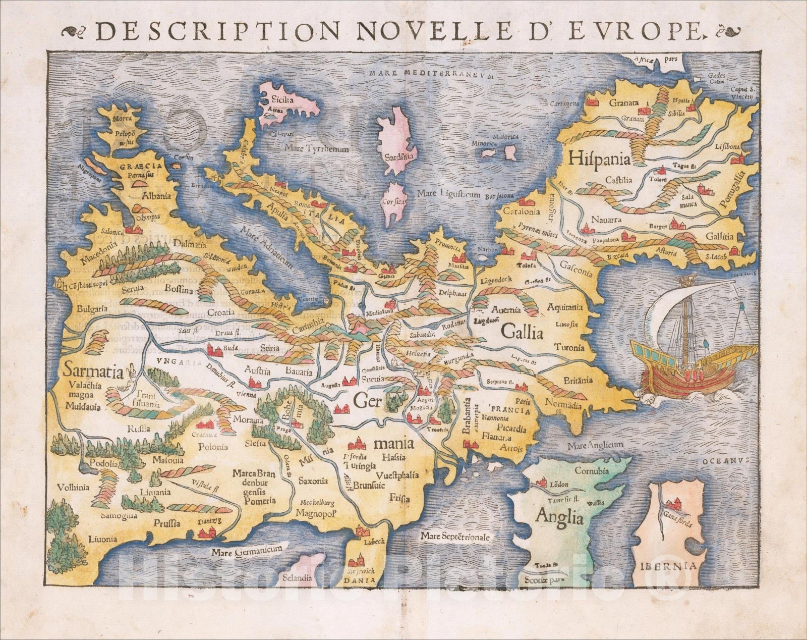 Historic Map : Description Nouvelle D'Europe, 1552, Sebastian M?nster, Vintage Wall Art