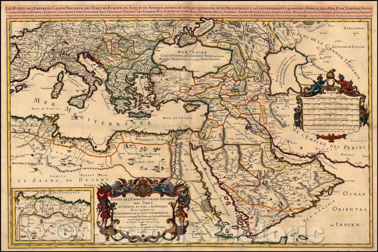 Historic Map - Estats De L'Empre Du Grand Seigneur Des Turcs En Europe, En Asie, et En Afrique divise en toutes se Beglerbeglic, our Gouvernement, 1675 - Vintage Wall Art