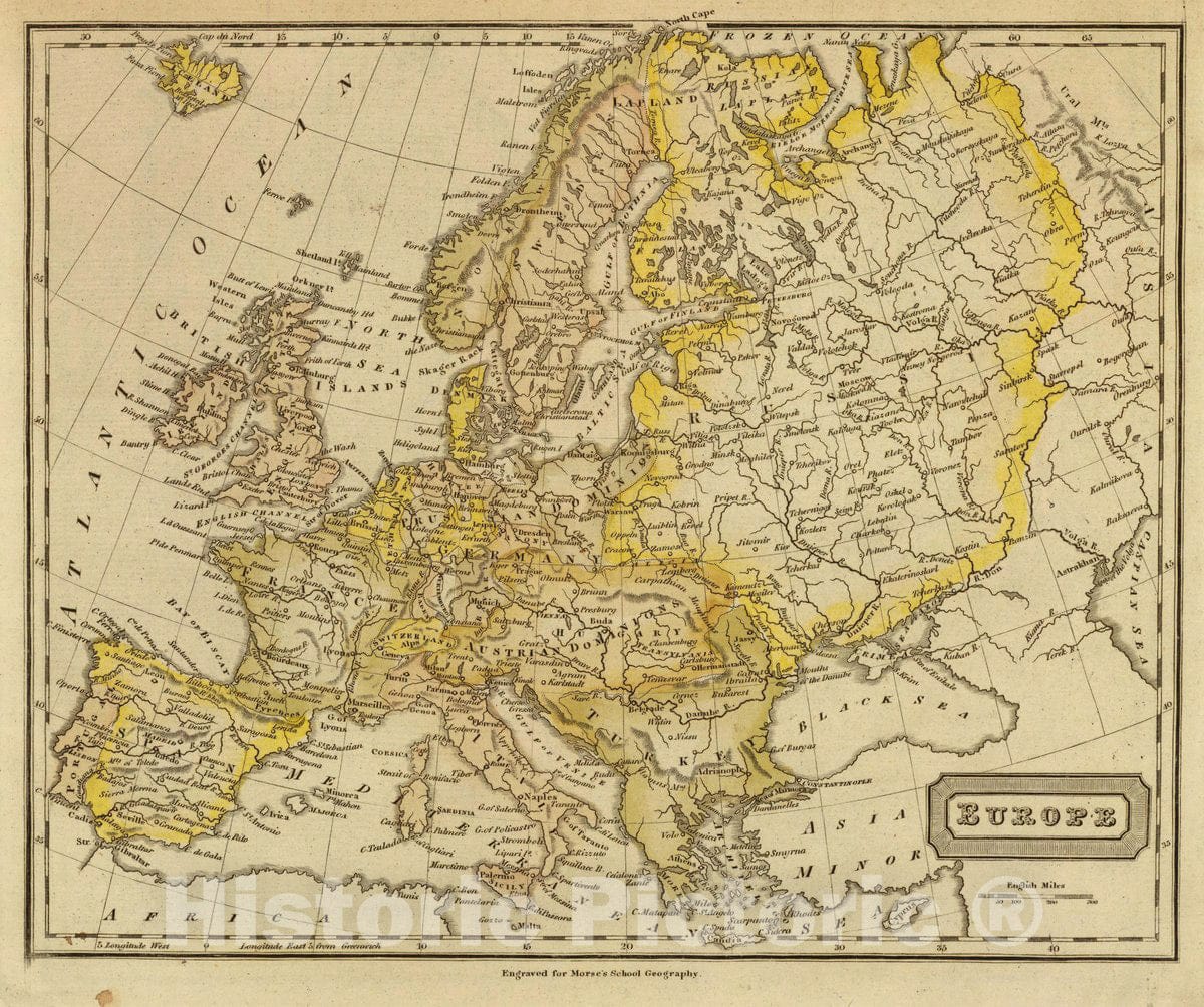 Historic Map : Europe. Engraved for Morse's School Geography. (Published by Richardson & Lord. Sold Also by Collins & Hannay, New-York, 1828), 1828 Atlas - Vintage Wall Art