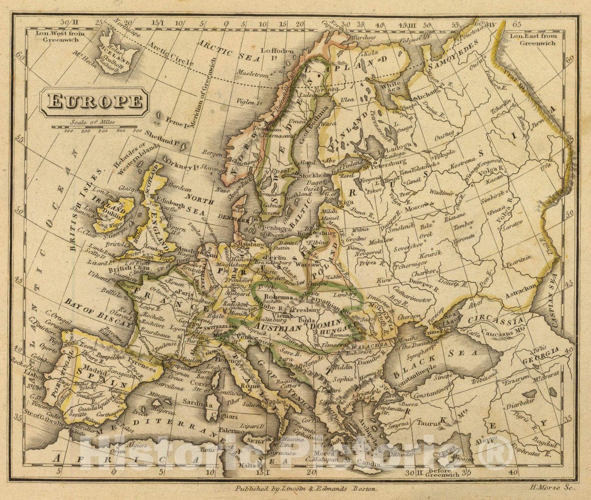 Historic Map : Europe. H. Morse Sc. Published by Lincoln & Edmands, Boston. (1832), 1832 Atlas - Vintage Wall Art