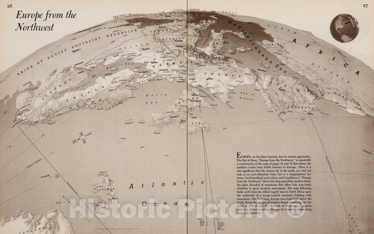 Historic Map : Europe from The Northwest. (Drawn by) Richard Edes Harrison 1940. Look at The World: The Fortune Atlas for World Strategy, 1944 Vintage Wall Art
