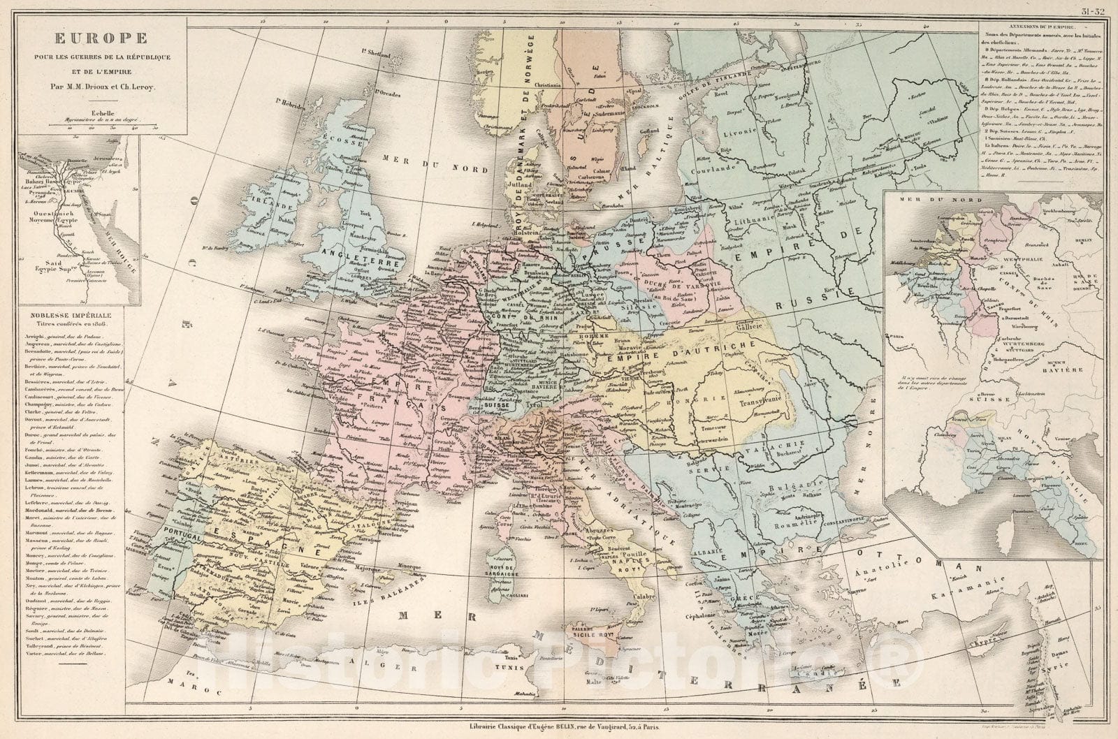 Historic Map : Europe pour les guerres de la Republique et de l'Empire, 1886, Vintage Wall Art