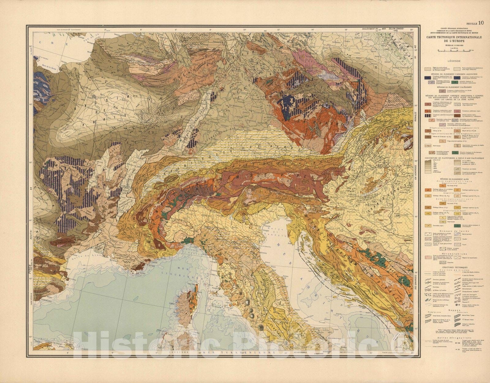 Historic Map : Feuille 10. Carte Tectonique Internationale de L'Europe. 1962 - Vintage Wall Art