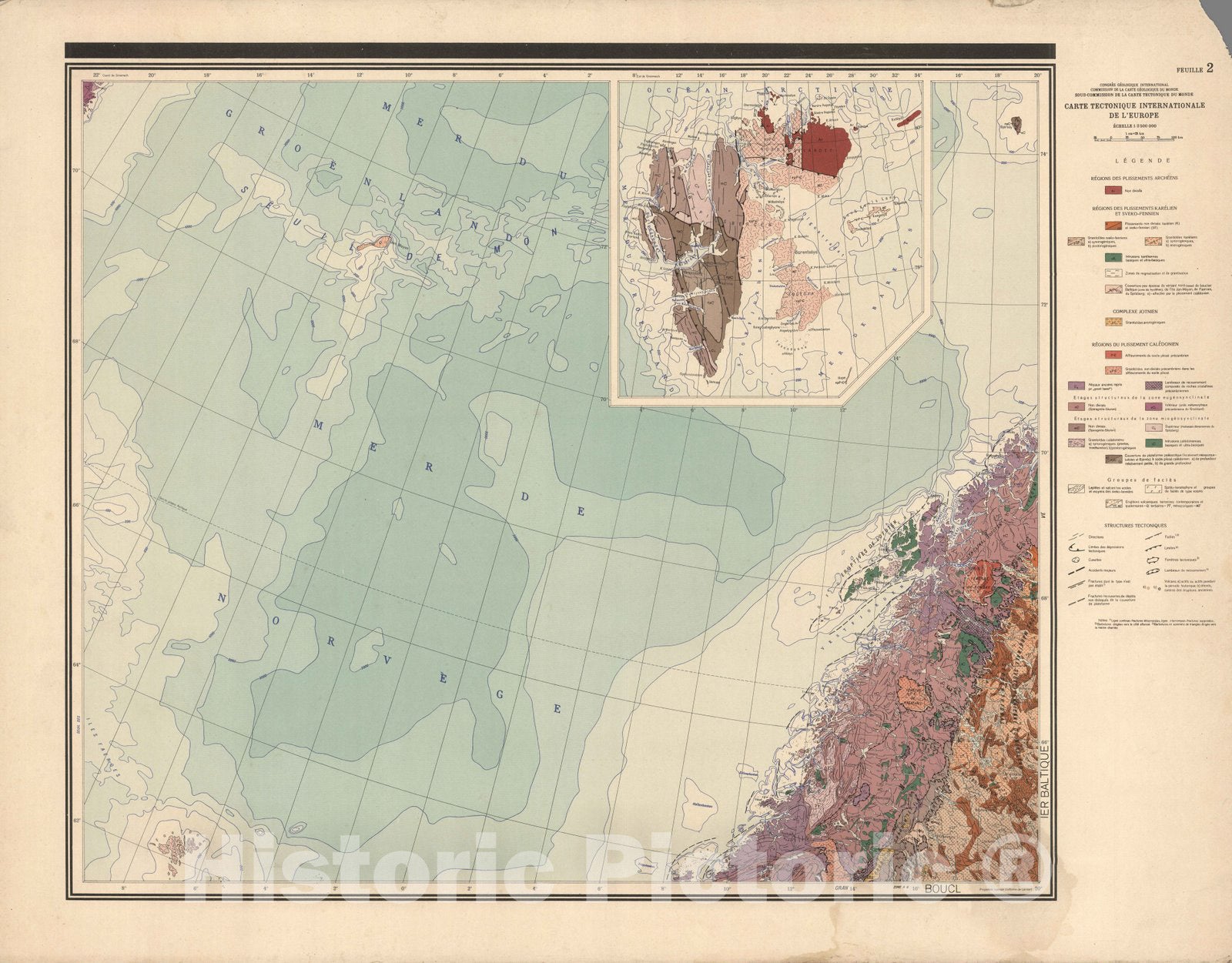 Historic Map : Feuille 2. Carte Tectonique Internationale de L'Europe. 1962 - Vintage Wall Art