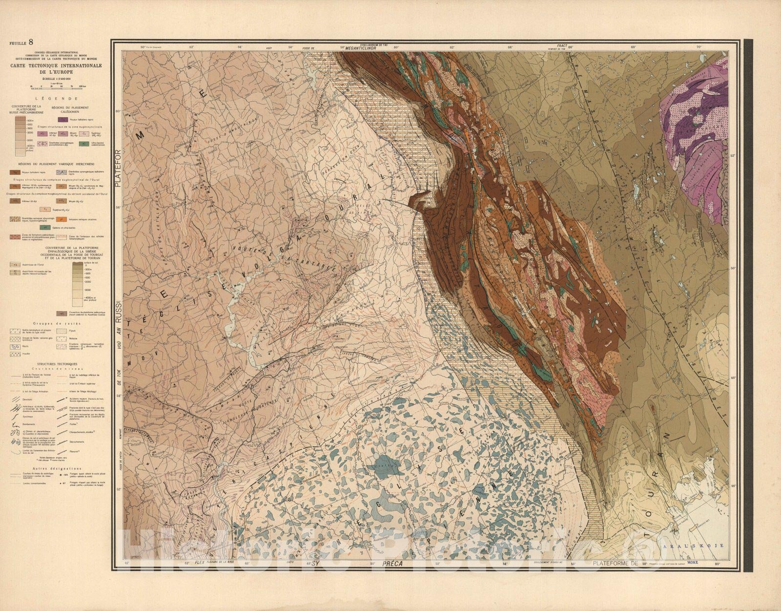 Historic Map : Feuille 8. Carte Tectonique Internationale de L'Europe. 1962 - Vintage Wall Art