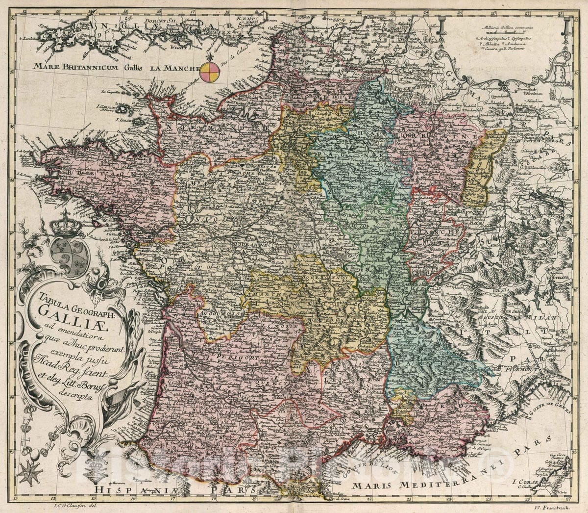Historic Map : France, , Europe 1753 Tabula geographica Galliae , Vintage Wall Art