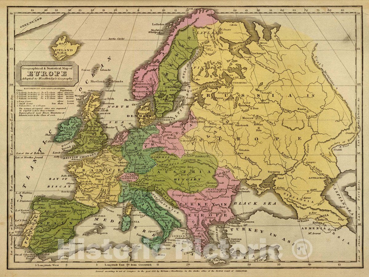 Geographical & statistical map of Europe, adapted to Woodbridge's Geography. Entered, 1831, 1837 Atlas -