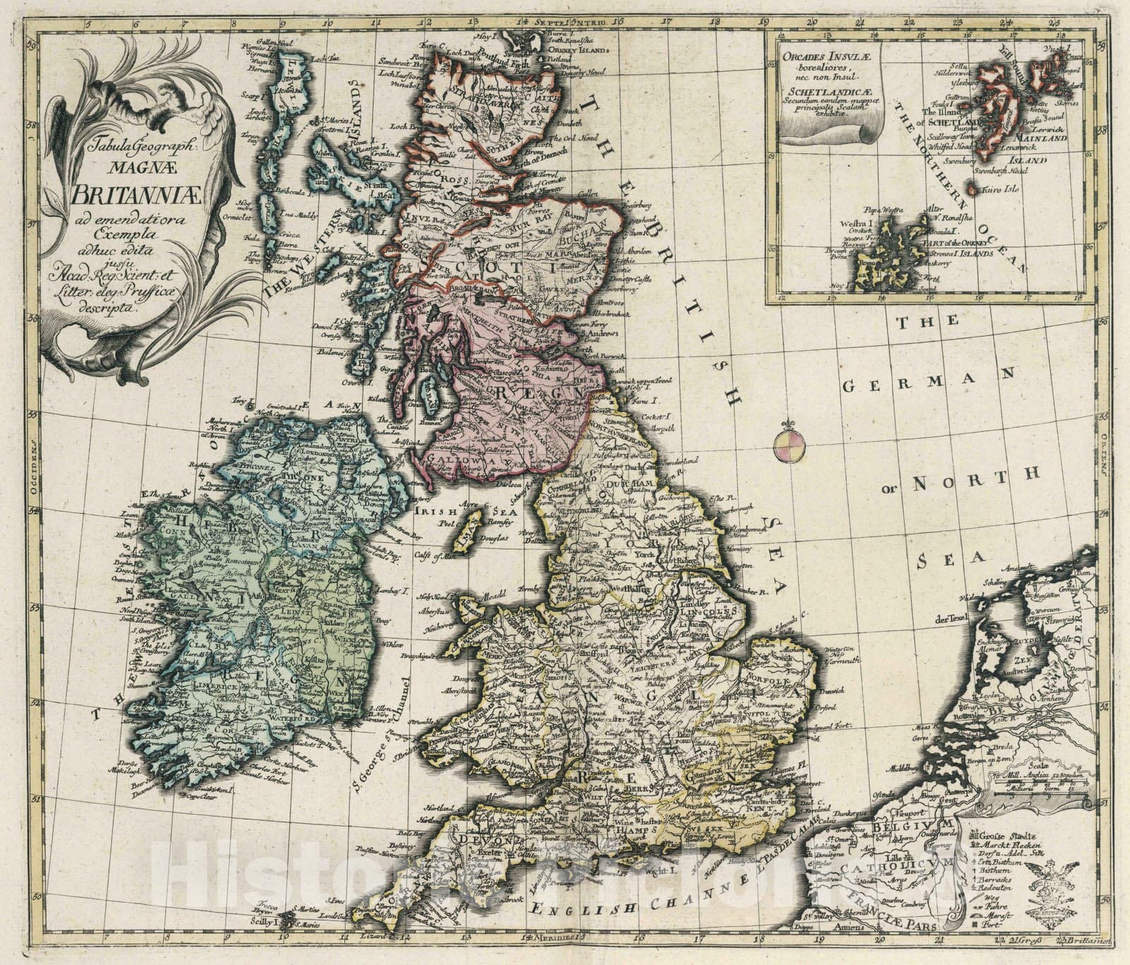 • .Historic Map : Great Britain, , Europe 1753 Tabula geographica Britanniae , Vintage Wall Art