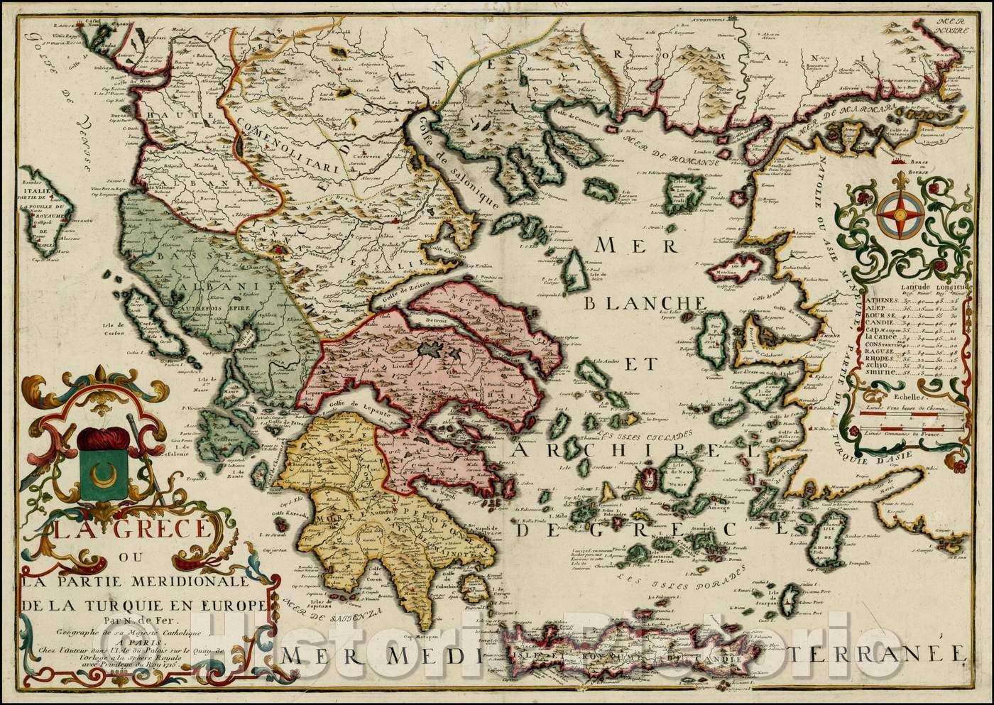 Historic Map - La Grece ou La Partie Meridionale De La Turquie En Europe, 1715, Nicolas de Fer v2