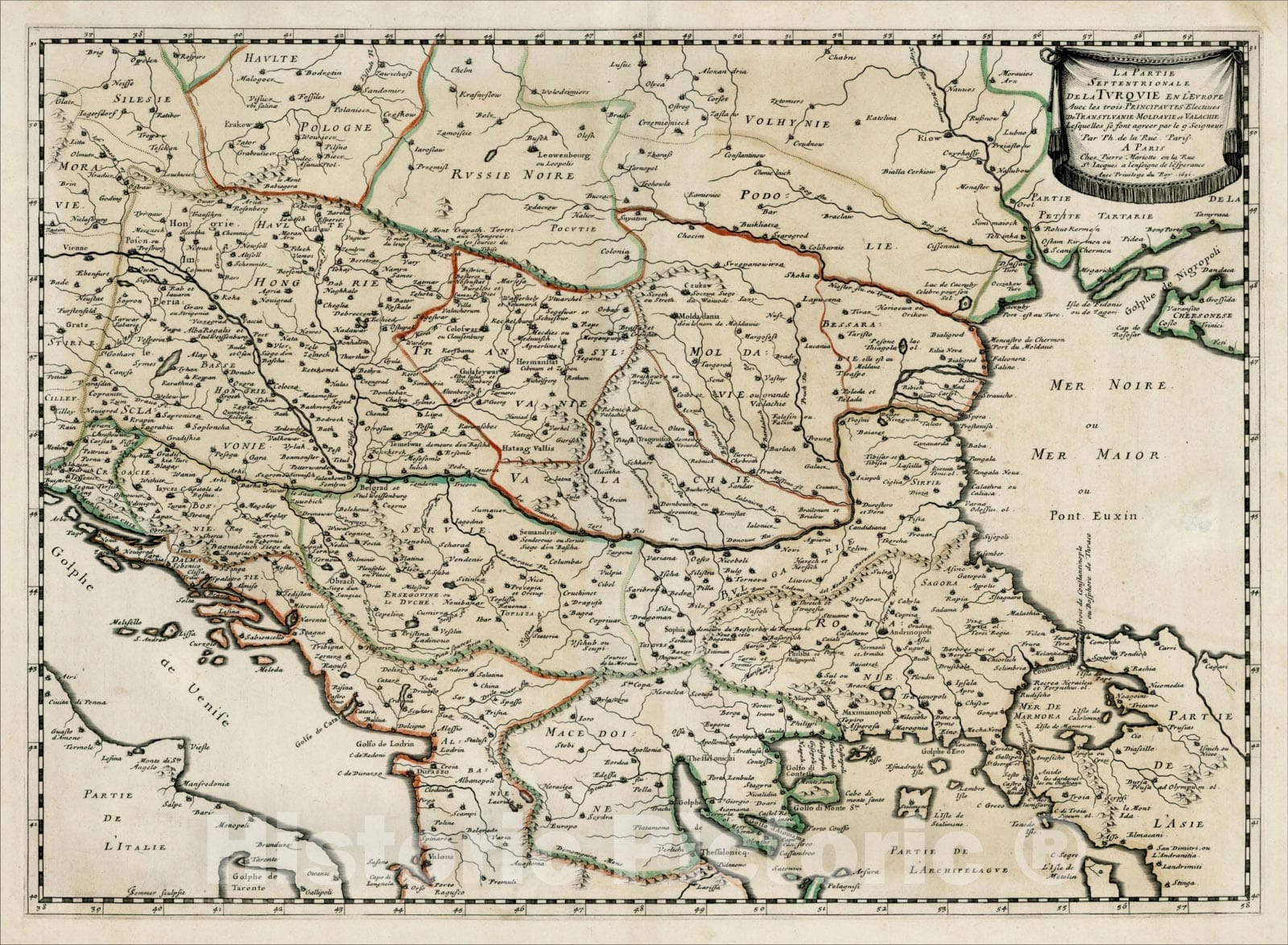 Historic Map : La Partie Septentrionale de la Turquie en L'Europe Avec les trois Principaute Electives de Transylvanie Moldavie et Valachie, 1651, 1651, , Vintage Wall Art