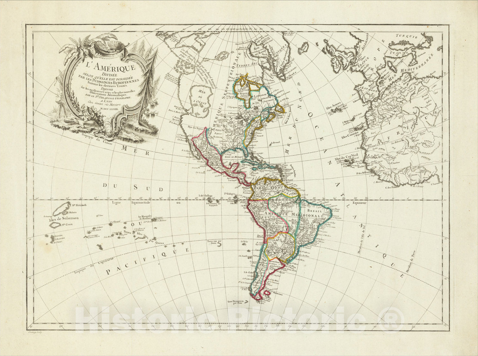 • .Historic Map : L'Amerique Divisee Selon Quelle Est Possedee Par Les Puissances Europeennes Suivant les derniers Traites [Bay of the West], 1779, Vintage Wall Art