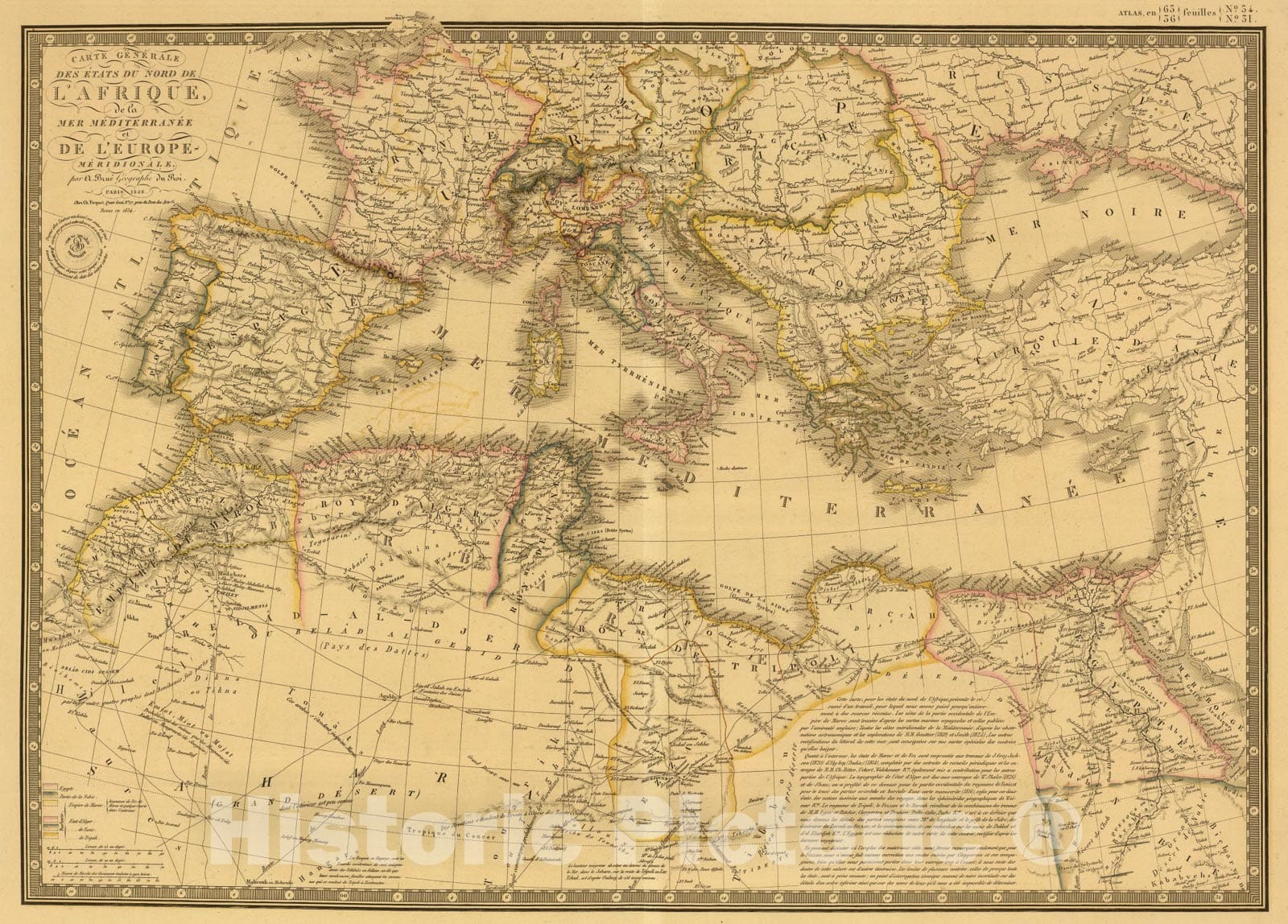 Historic Map : Nord de l'Afrique, Mer Mediterranee, Europe Meridionale., 1834, Vintage Wall Art