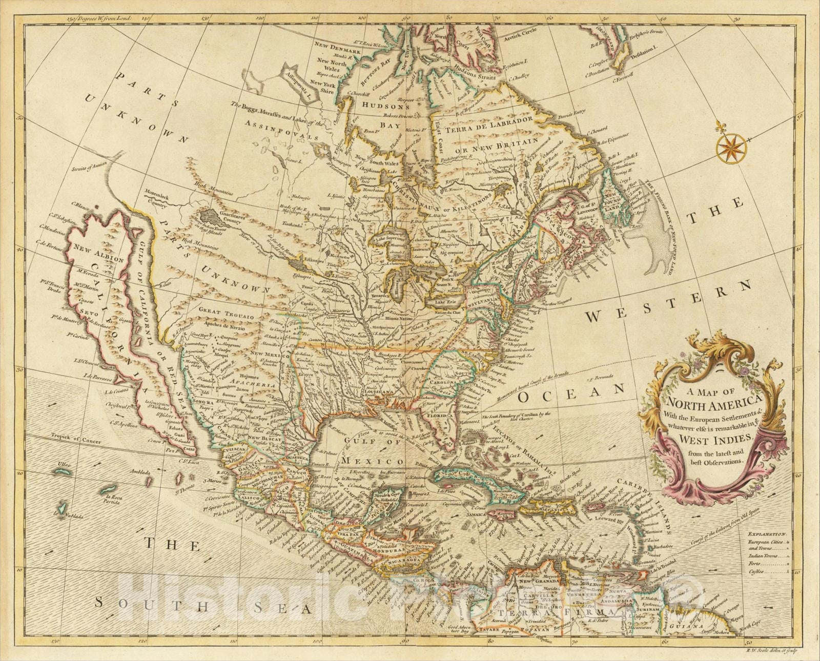 Historic Map : A Map of North America With the European Settlements & whatever else is remarkable in ye West Indies from the latest and best Observations, 1733, Vintage Wall Art