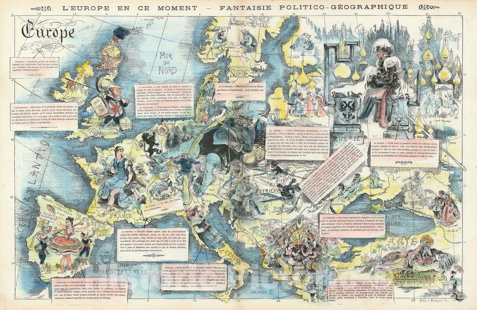 Pictorial Map of Europe after The Franco-Prussian War, Yves and Barret, 1872