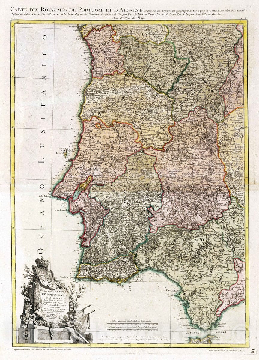Portugal, , Europe 1763 Mapa dos Reynos de Portugal e Algarve , Vintage Wall Art