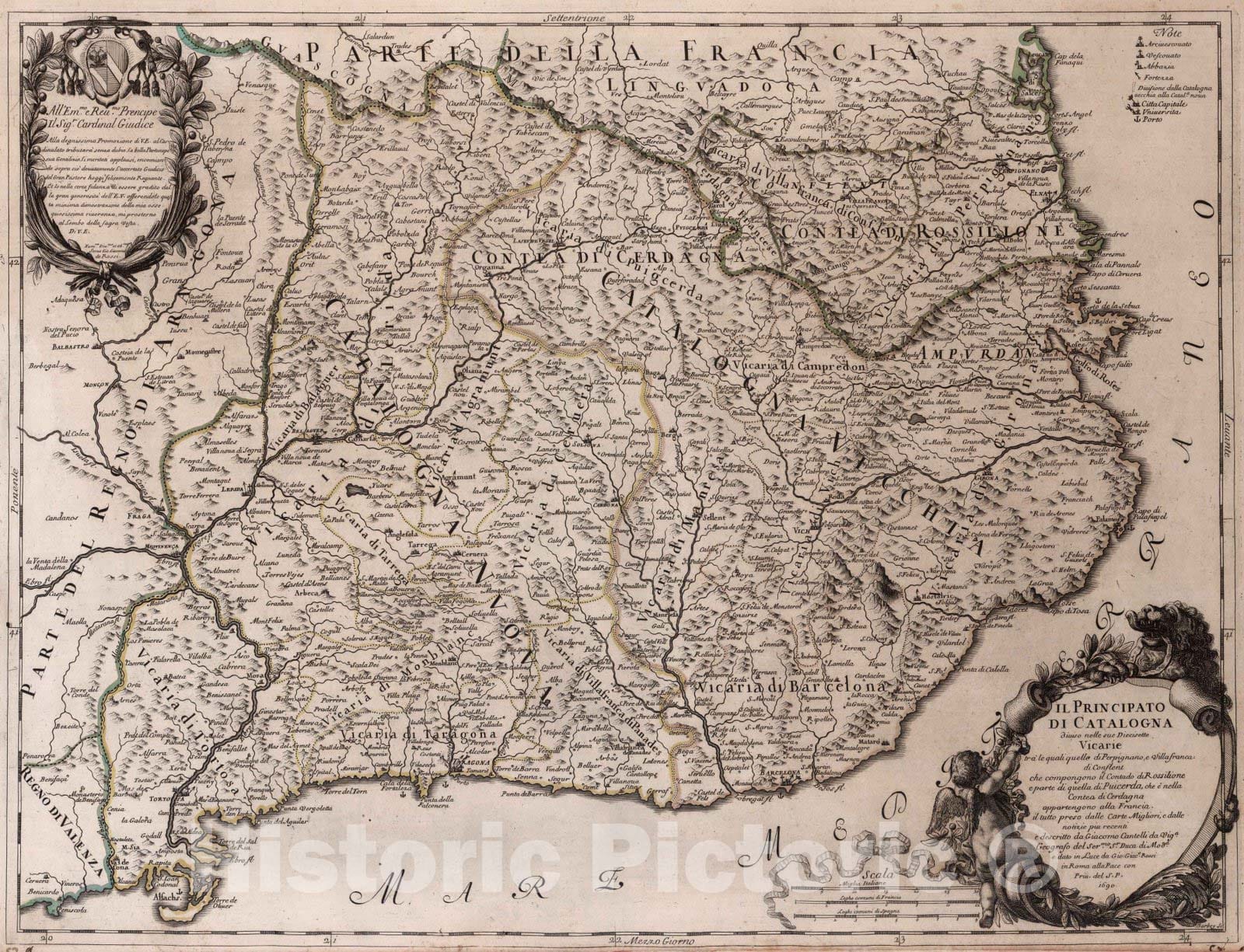 Historic Map : Spain, , EuropeIl Principato di Catalogna 1690 , Vintage Wall Art