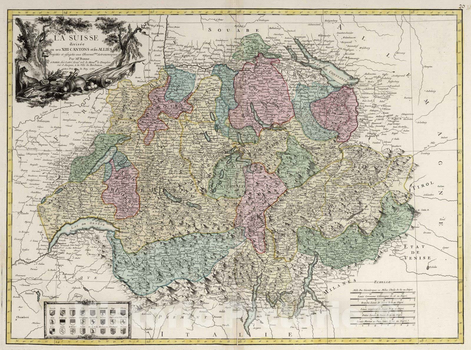 Historic Map : Switzerland, , Europe 1767 La Suisse : divisee en ses XIII Cantons et ses Allies , Vintage Wall Art