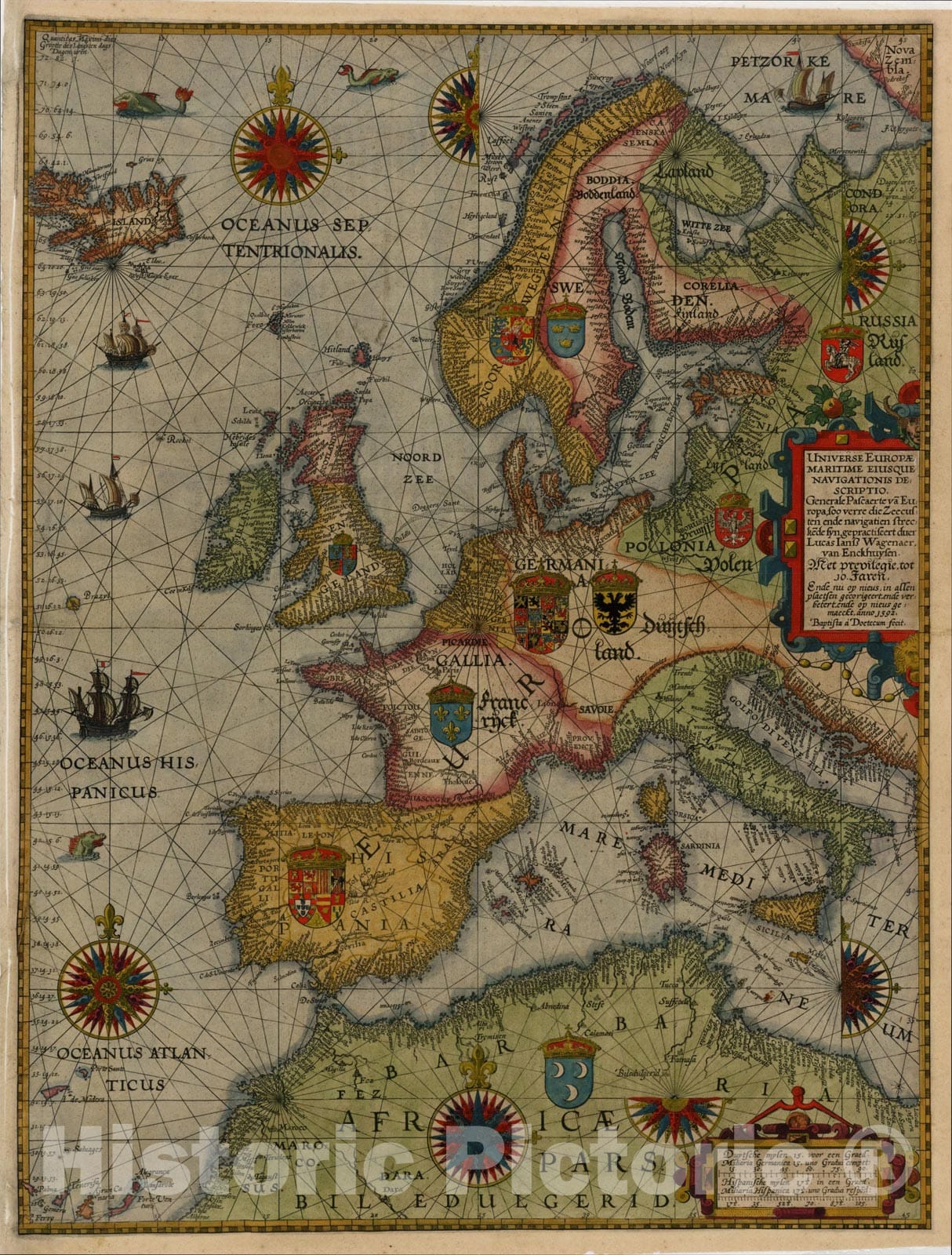 Historic Map : Universe Europe Maritime Eiusque Navigationis Descriptio. Generale Paschaerte van Europa, 1592, c1592, , Vintage Wall Art