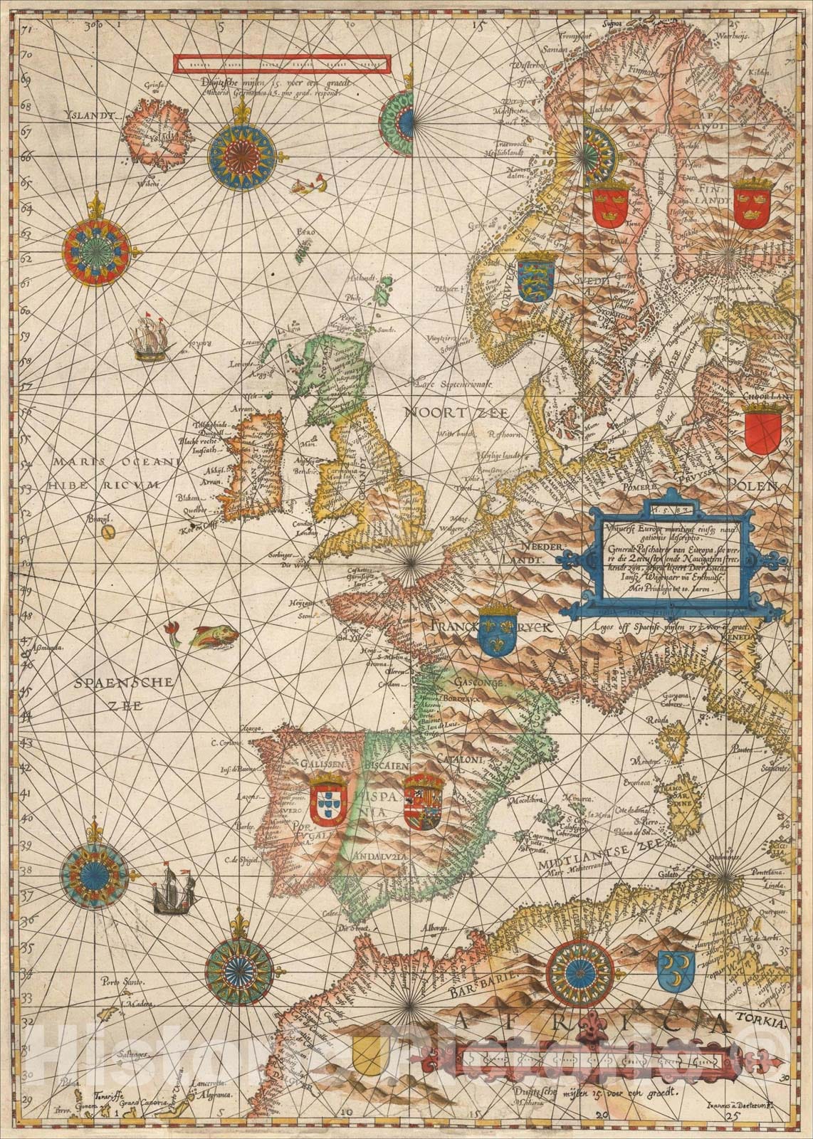 Historic Map : Universe Europe maritime eiusque navigationis descriptio. Generale Paschaerte van Europa , 1583, Lucas Janszoon Waghenaer, Vintage Wall Art