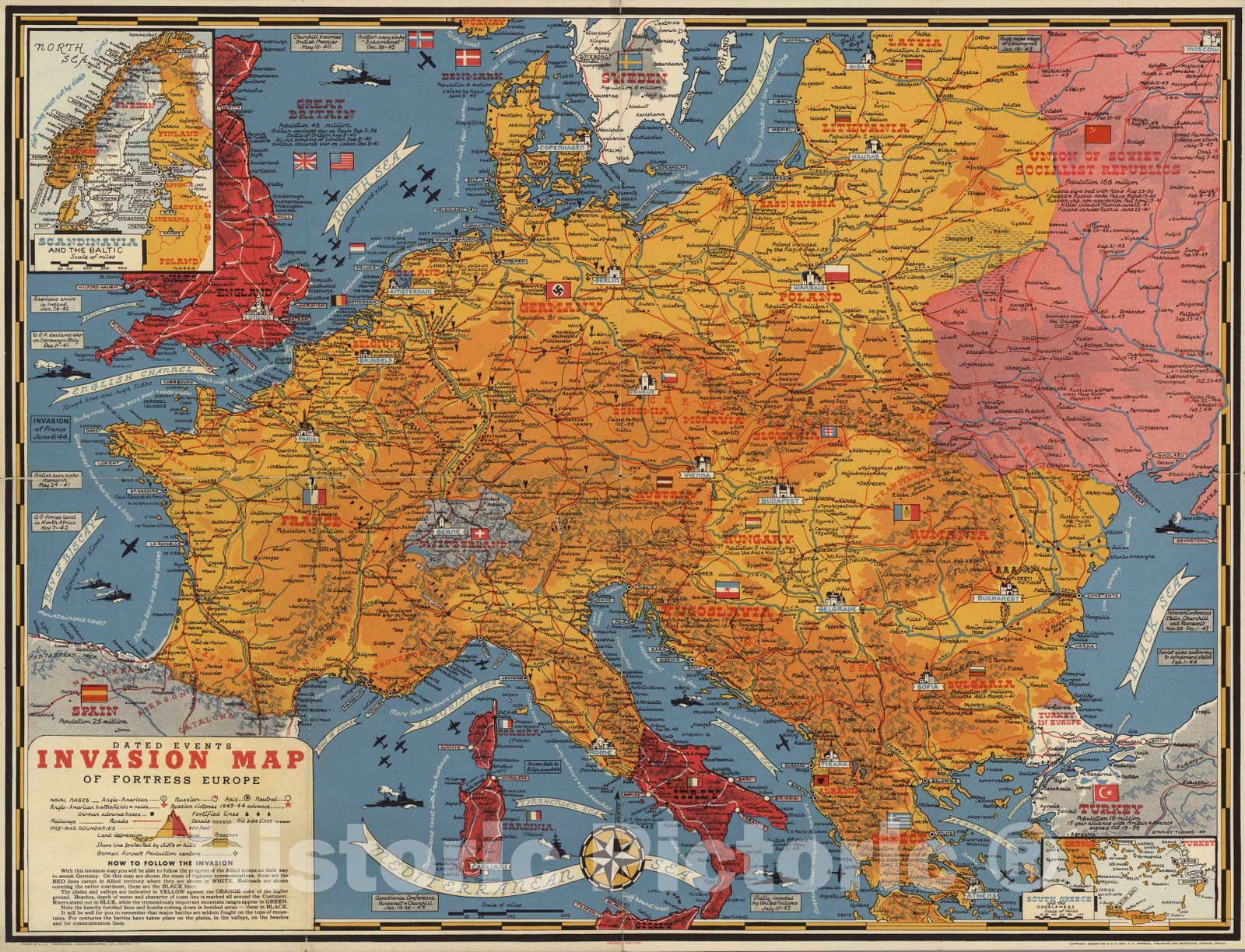 Historic Wall Map : Dated events invasion map of fortress Europe. Stanley turner, 1944 - Vintage Wall Art