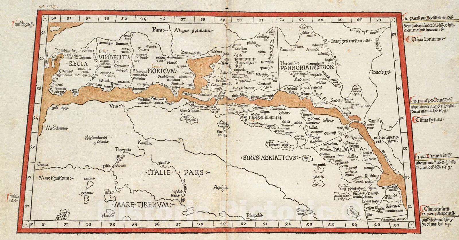 Historical Map, 1482 Quinta Europe tabula continet Rhetia, Vintage Wall Art