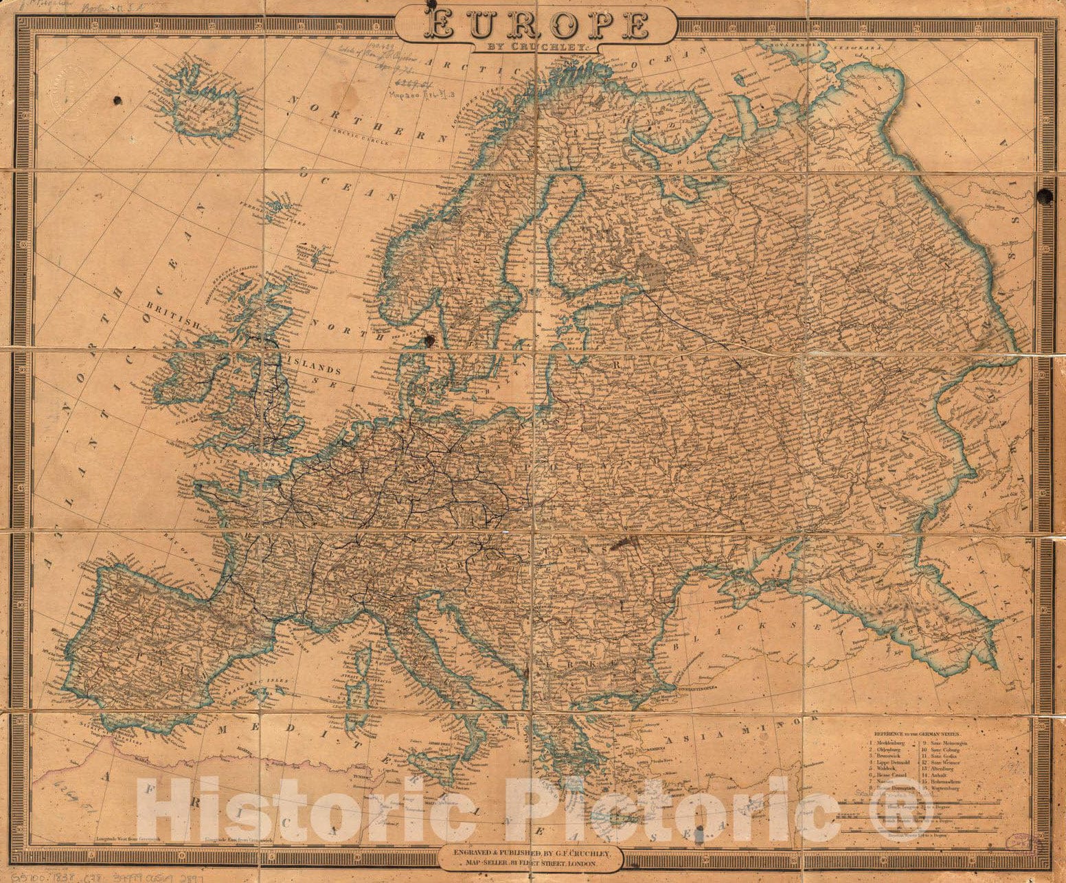 Historical Map, 1838 Europe, Vintage Wall Art