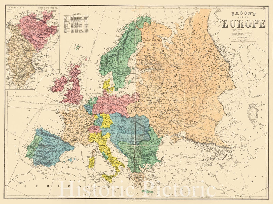 Historical Map, 1870 Bacon's map of Europe, Vintage Wall Art