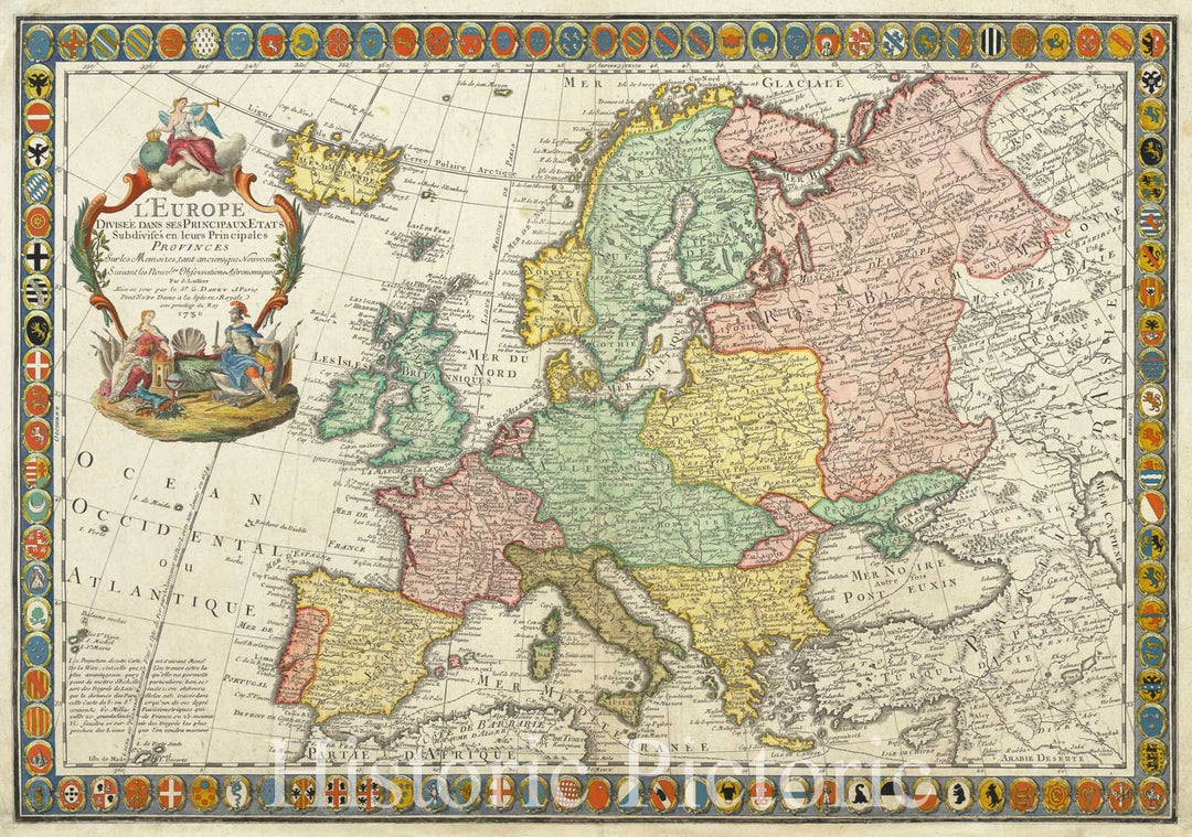 Historic Map : L'Europe divisee dans se principaux etats subdivise's en leurs principales provinces, 1730, Vintage Wall Art
