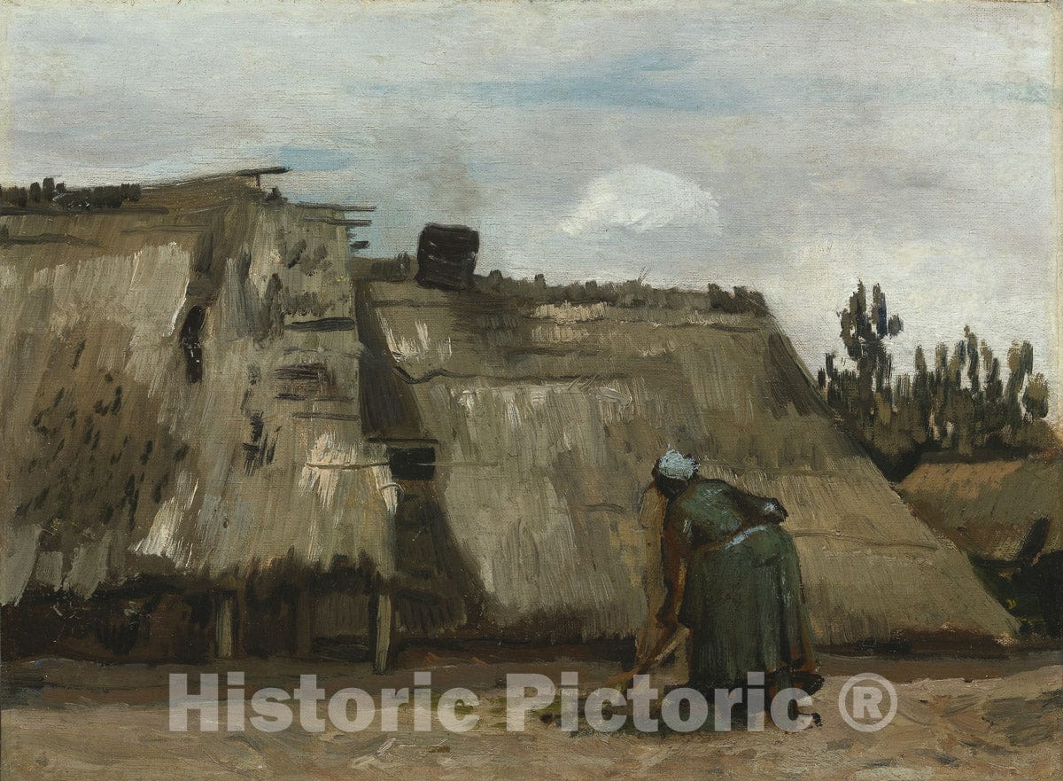 Art Print : A Peasant Woman Digging in Front of Her Cottage, Vincent Van Gogh, c 1913, Vintage Wall Decor :