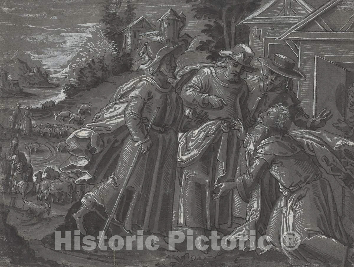 Art Print : Abraham Entertaining The Angels [Verso], c. 1600 - Vintage Wall Art