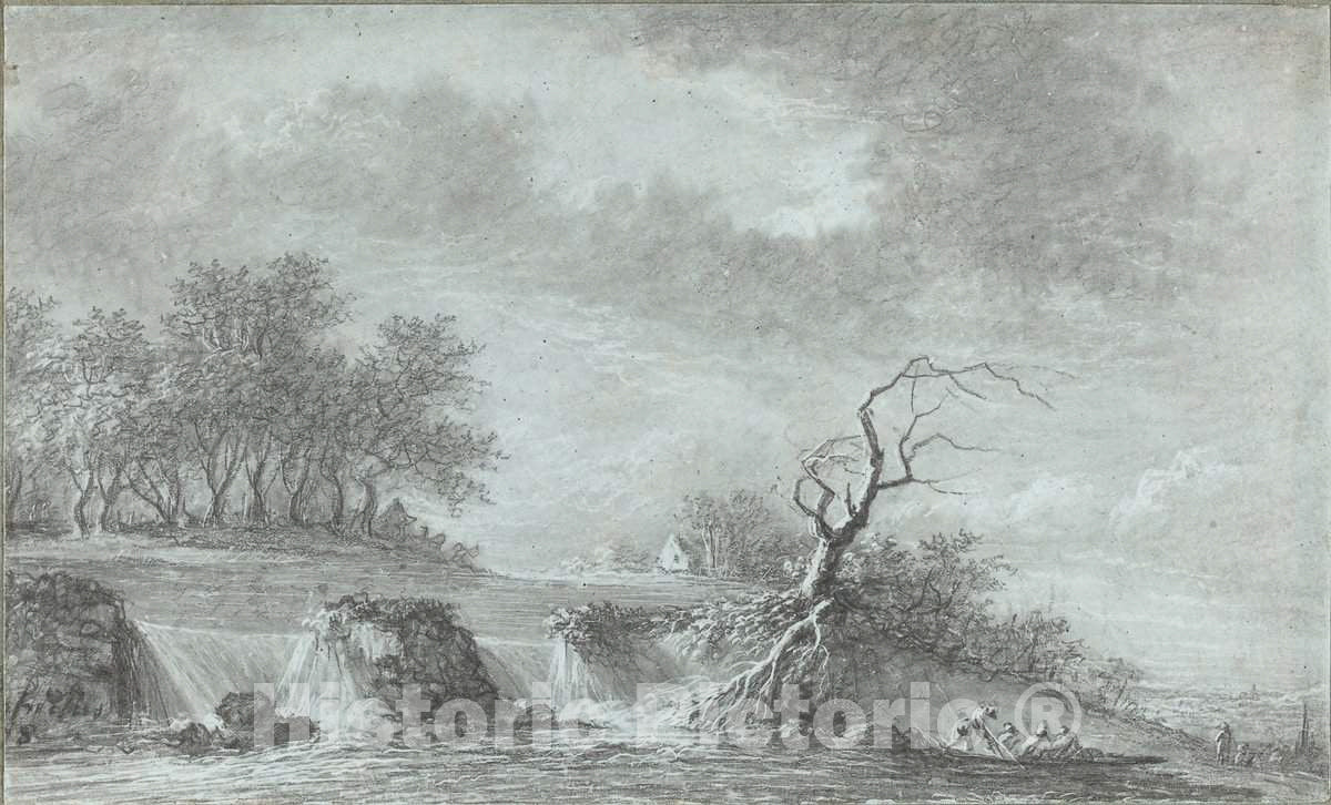 Art Print : Aignan-Thomas Desfriches, Riverscape with a Waterfall, 1768 - Vintage Wall Art