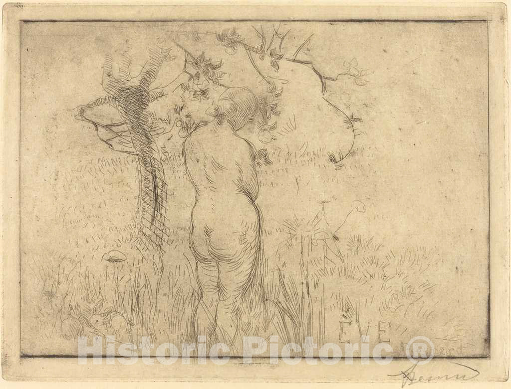 Artist: Albert Besnard | Print: Eve before the Apple Tree (Eve de dos devant le pommier) | Original Medium: etching in black on thin cream laid paper