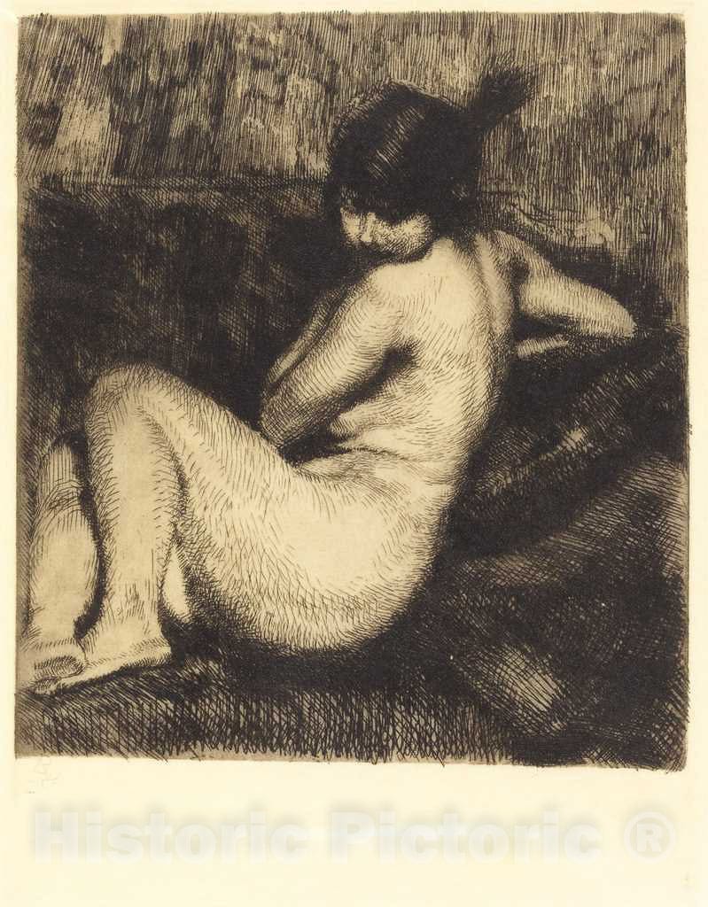 Artist: Albert Besnard | Print: The Feathered Turban (Le turban ? aigrette) | Original Medium: etching, drypoint, and aquatint in black on imitation vellum paper