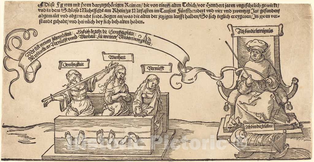 Art Print : Albrecht Dürer, Justice, Truth and Reason in The Stocks with The Seated Judge and Sleeping Piety, 1526 - Vintage Wall Art