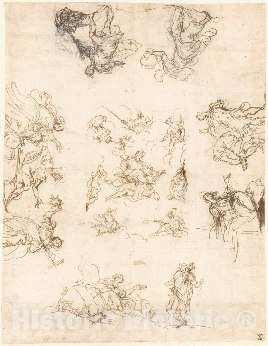 Artist: Alessandro Maganza | Drawing: A Compartmented Ceiling with Allegories and Myths | Original Medium: pen and brown ink over black chalk on laid paper
