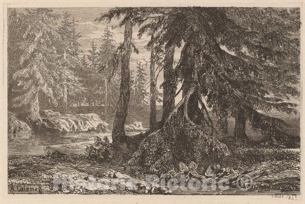 Art Print : Alexandre Calame, Essais de gravure à l'eau Forte par Alexandre Calame, III, pl. 16, 1845 - Vintage Wall Art