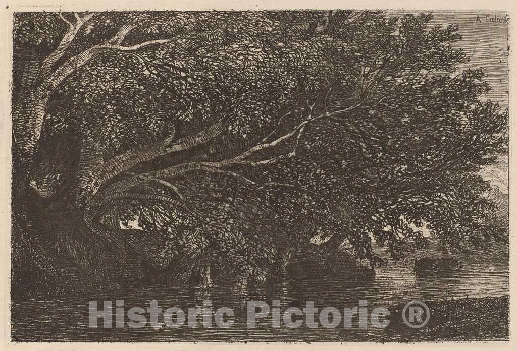 Artist: Alexandre Calame | Print: Trees Overhanging a Pond | Original Medium: etching