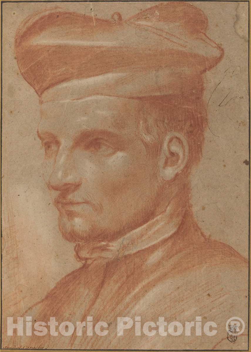 • .Art Print : Annibale Carracci, Portrait of an Ecclesiastic Wearing a Biretta, c.1585 - Vintage Wall Art