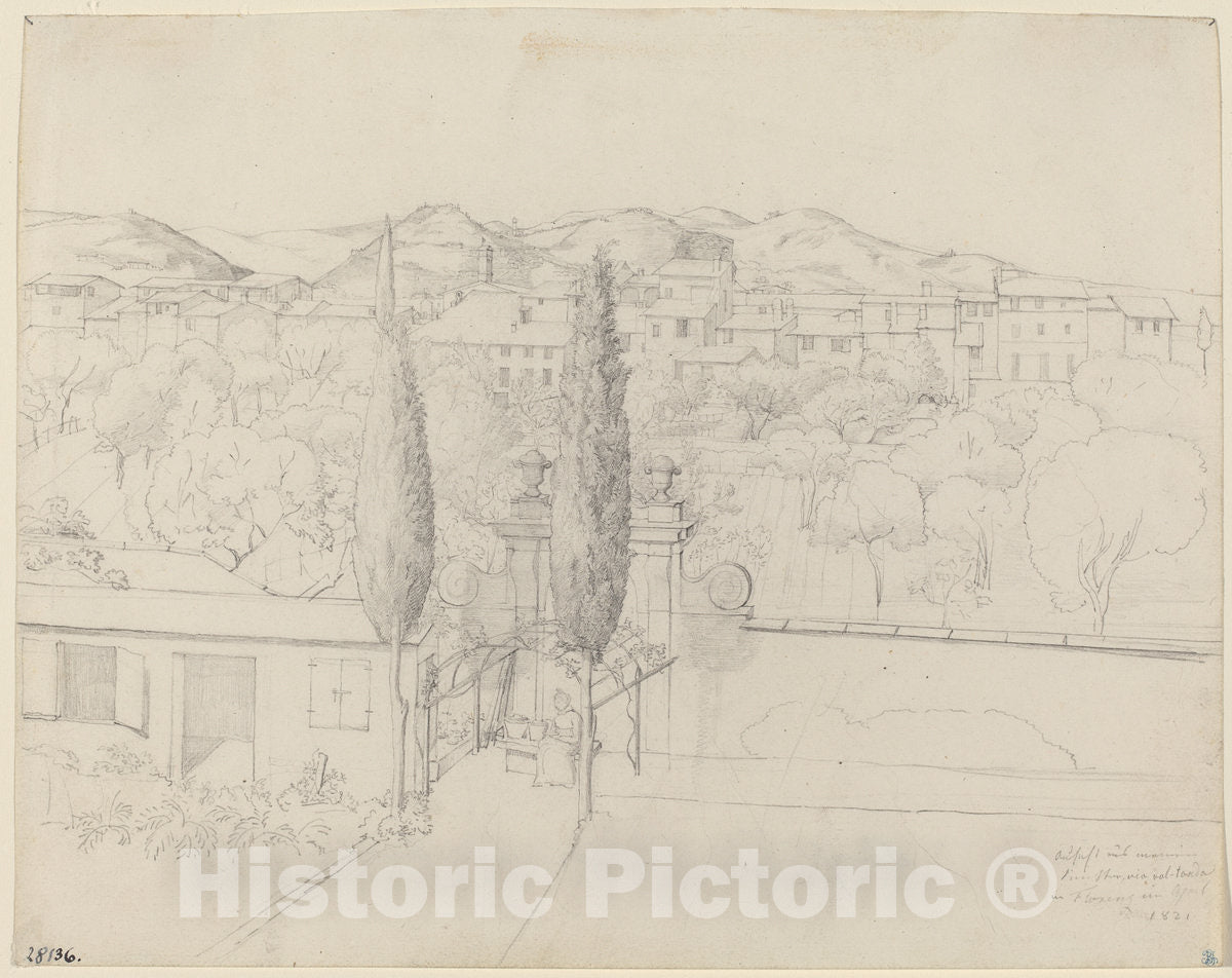 Art Print : Anton Krüger, Aussicht aus Meinem Fenster, via valfonda in Florenz (Gardens in Florence Seen from The Artist's Window), 1821 - Vintage Wall Art