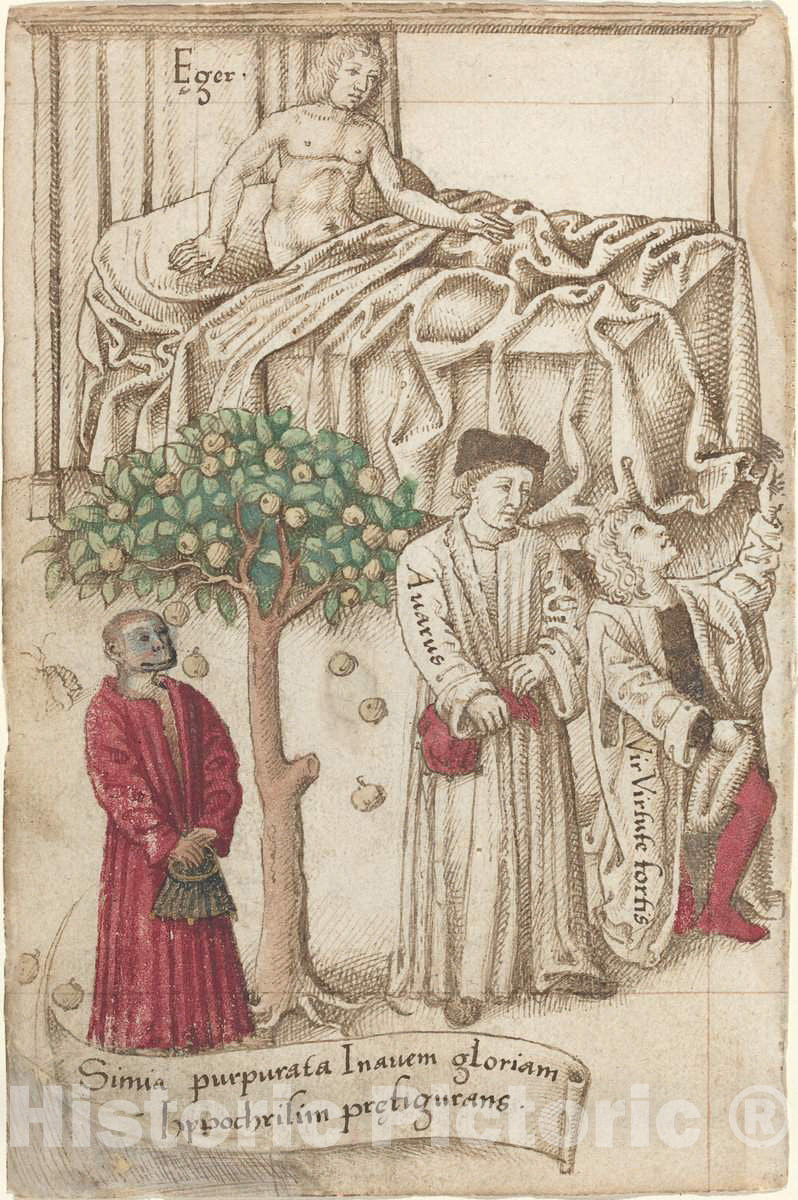 Art Print : an Ape in Purple with a Sick Man, a Good Man, and a Miser [FOL. 36 Verso], c.1514 - Vintage Wall Art