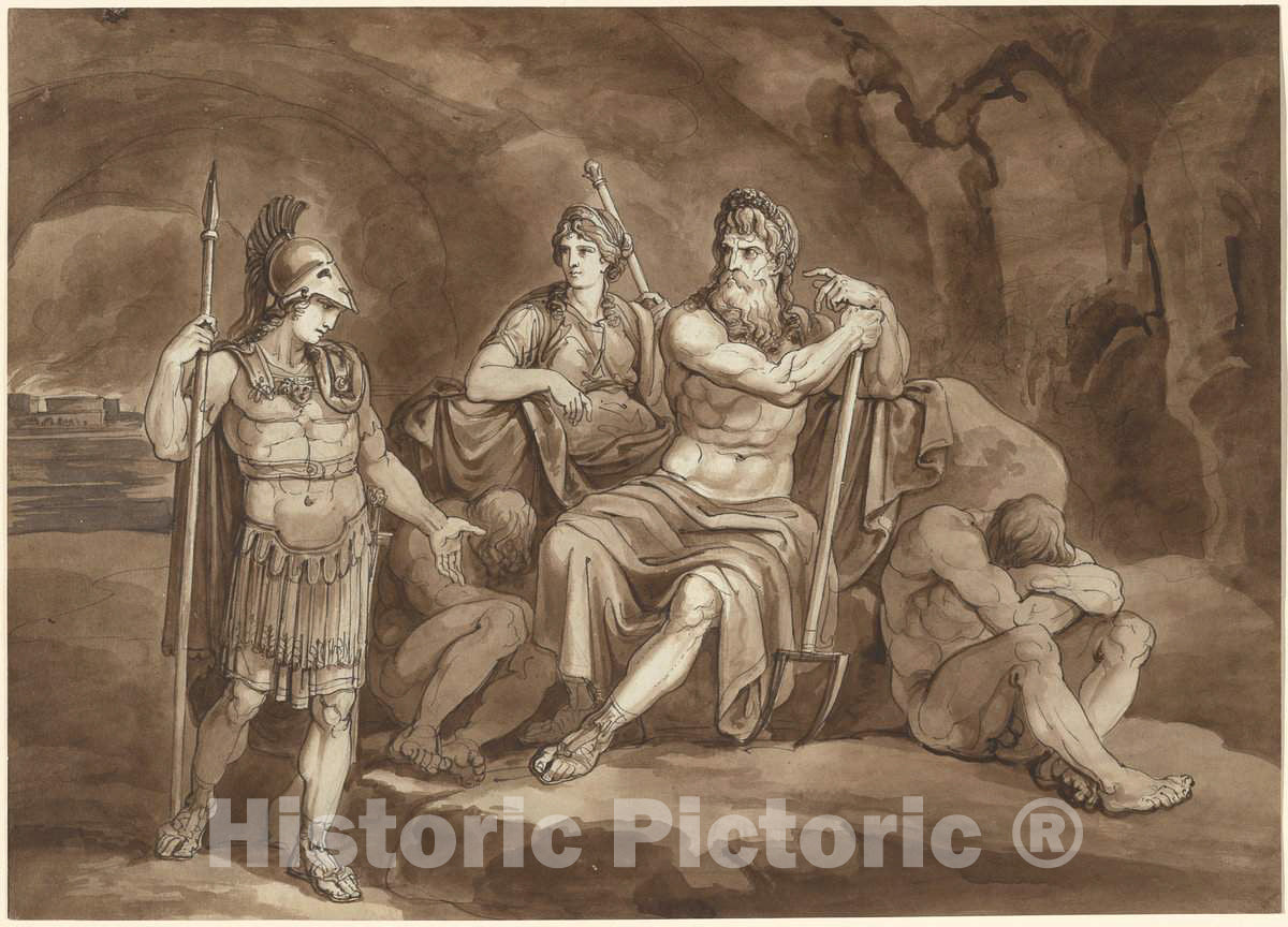 Art Print : Bartolomeo Pinelli, Telemachus Requests Permission from Pluto to Seek His Father in The Underworld, 1809 - Vintage Wall Art