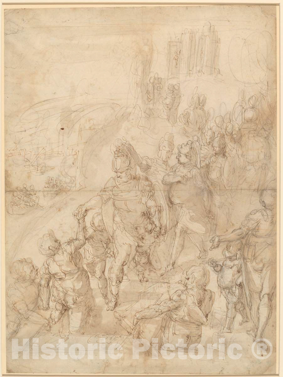 Art Print : Benso, After Luca Cambiaso, The Embarkation of Aeneas from The Ceraunian Headland - Vintage Wall Art