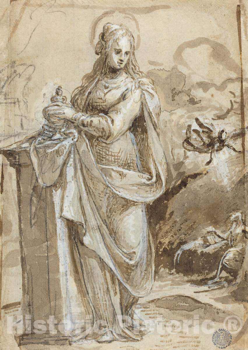 Art Print : Biagio Pupini, Mary Magdalene [Verso], in or After 1524 - Vintage Wall Art