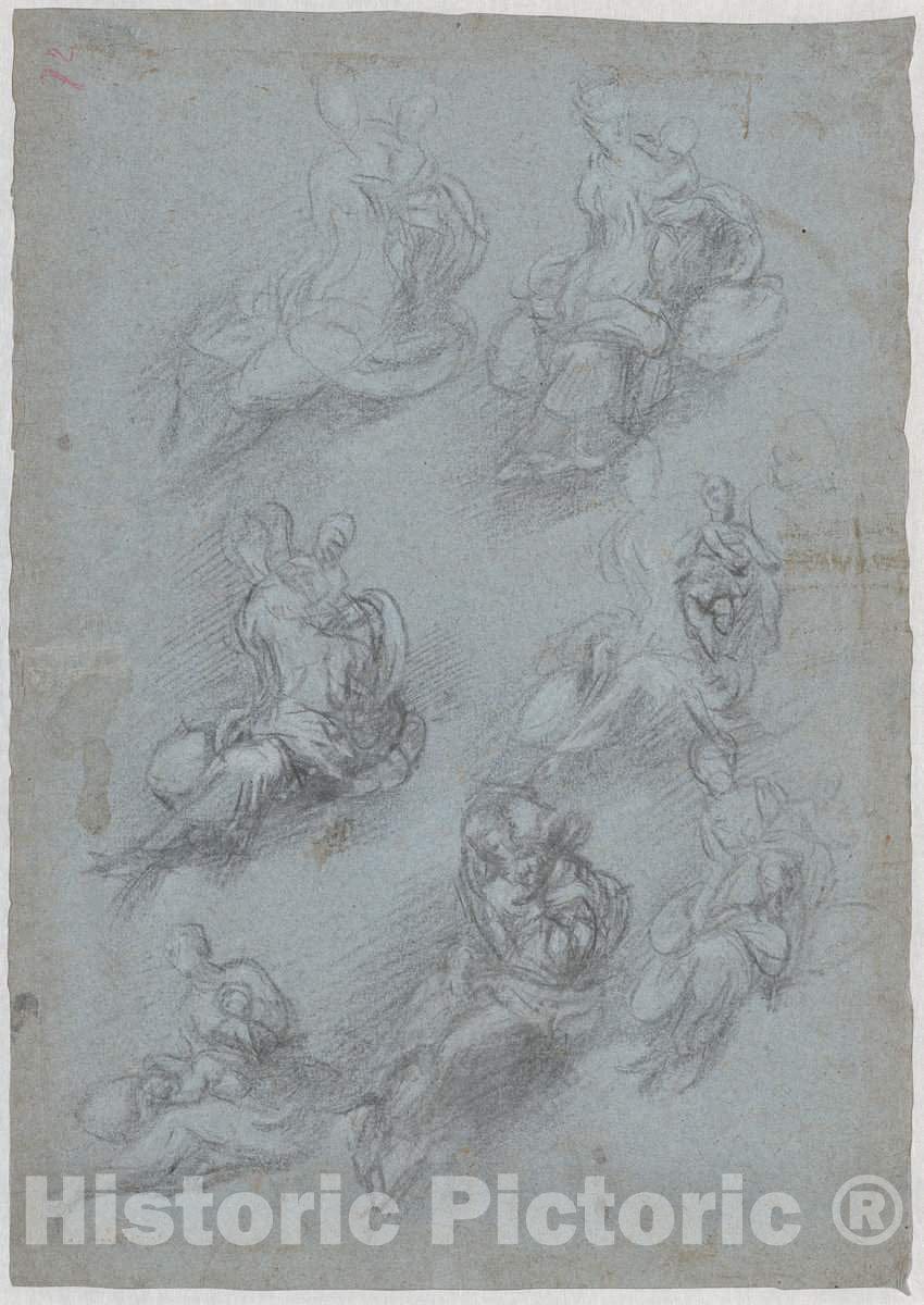 Art Print : Camillo Boccaccino, Studies for The Virgin and Child (Recto), c. 1532 - Vintage Wall Art