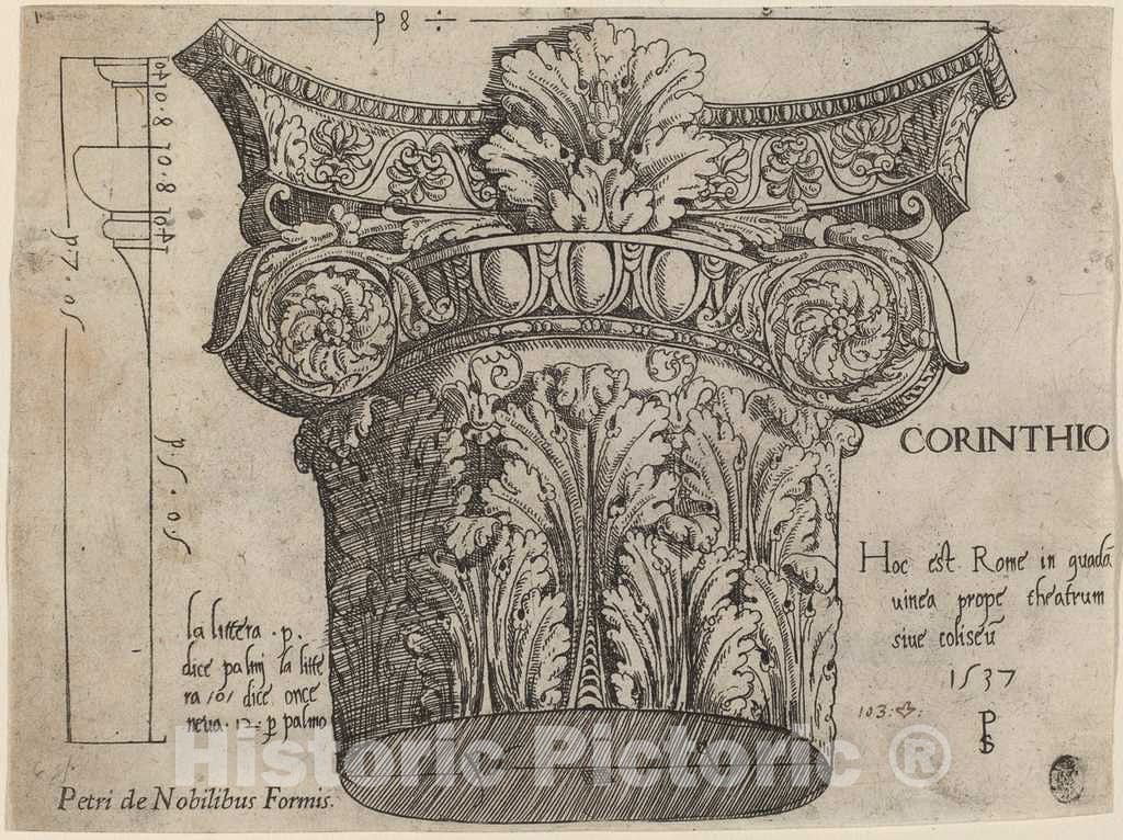 Art Print : Capital from The Colosseum, Rome, 1537 - Vintage Wall Art