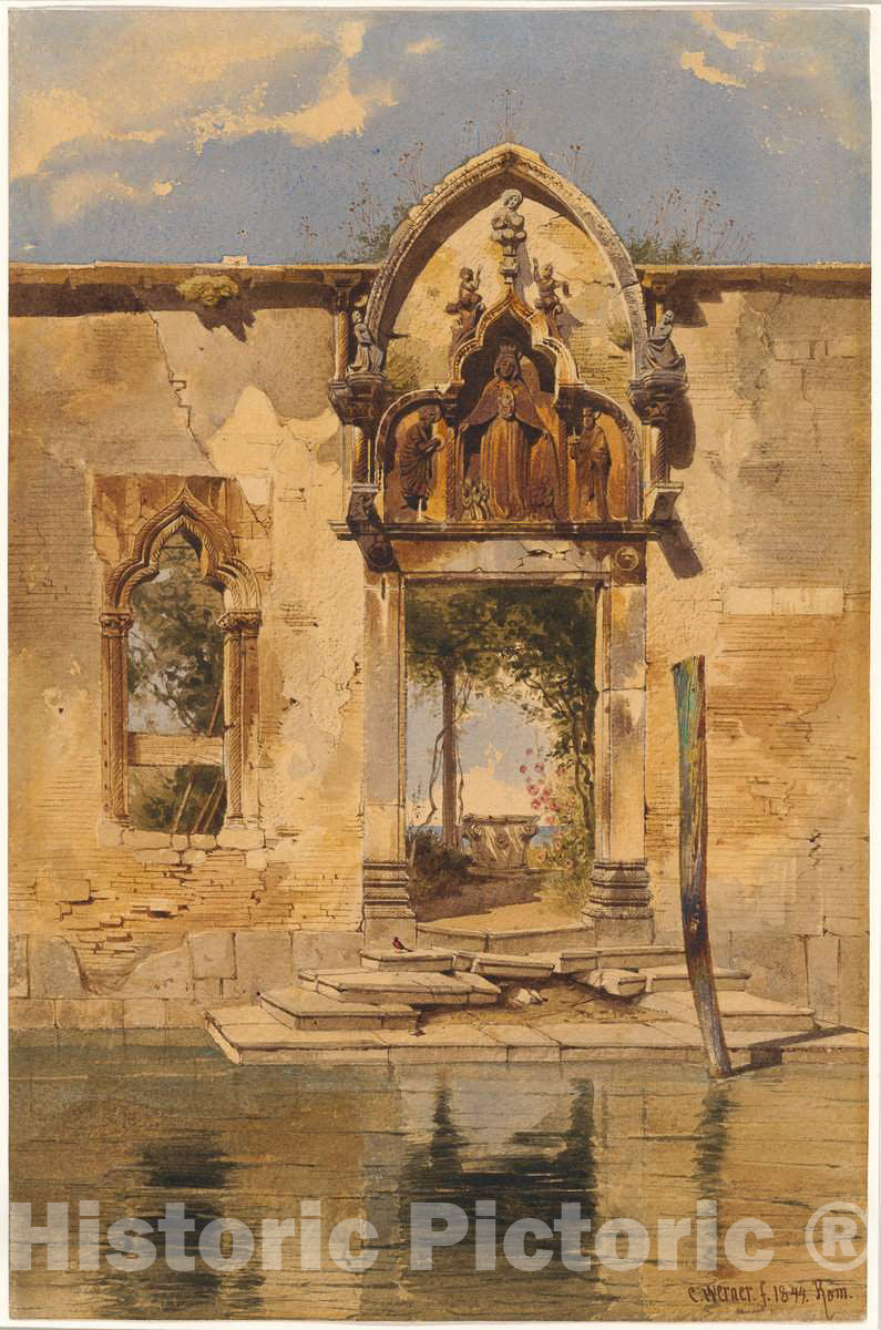 Art Print : Carl Friedrich Heinrich Werner, The Portal of The Madonna Della Misericordia from The Canal, 1844 - Vintage Wall Art