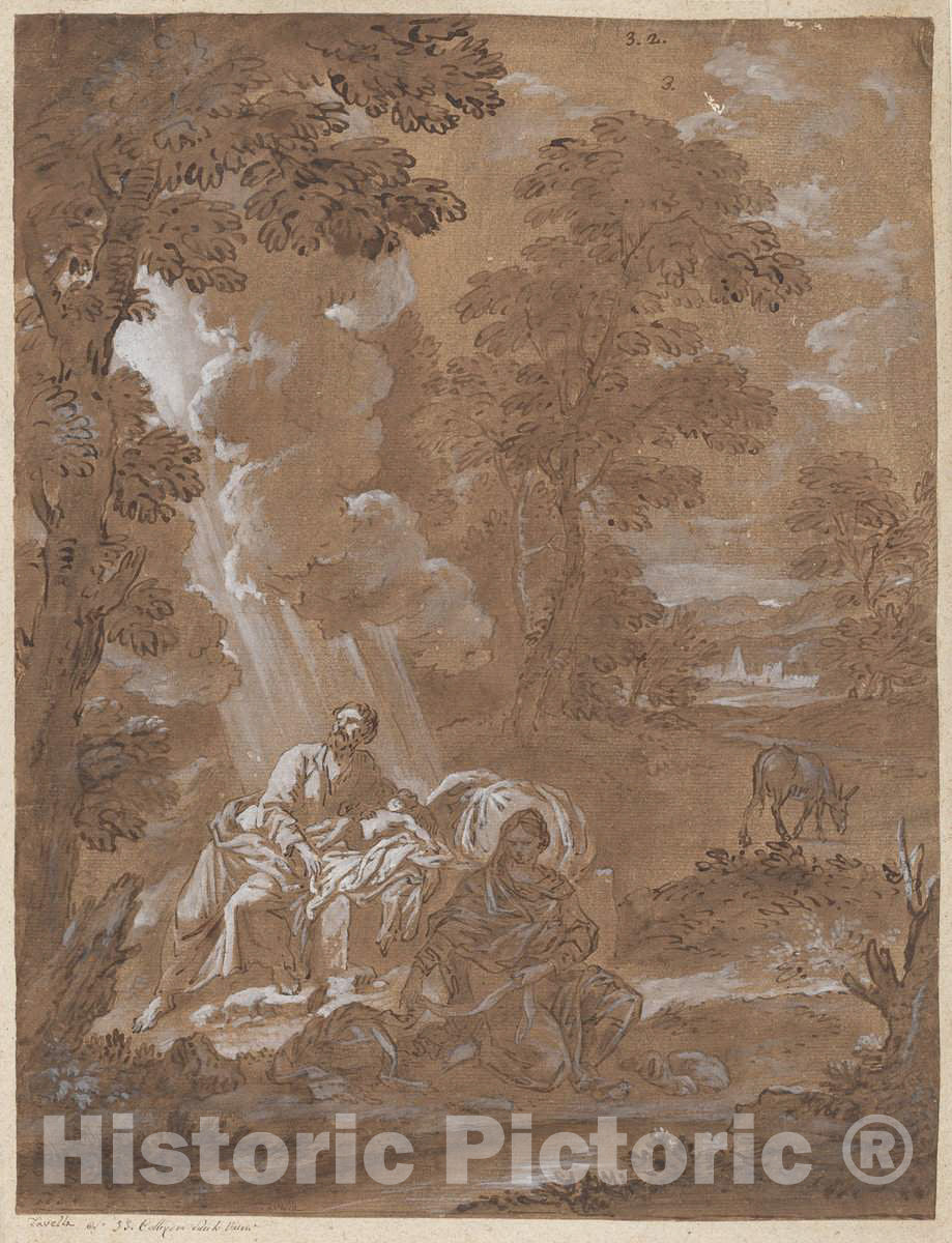 Artist: Carlo Antonio Tavella | Drawing: The Rest on the Flight into Egypt | Original Medium: pen and brown ink and brush and brown wash, heightened with white, on laid paper